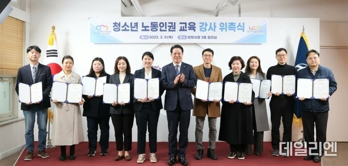 [데일리엔뉴스 이종성 기자] 안양시노동인권센터(이하 센터)는 9일 청소년들의 노동인권 교육 활성화를 위해 청소년 노동인권 강사 12명을 신규 위촉했다고 밝혔다.