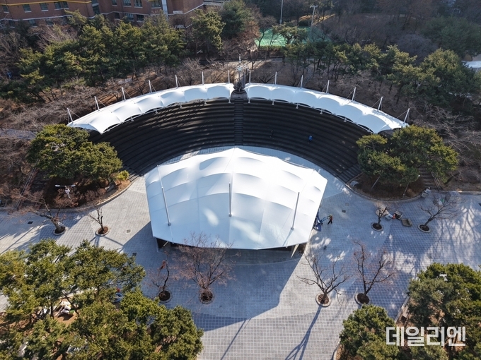 정비된 무대는 디자인 가벽과 막구조 지붕을 도입해 공연 시 소음 발생을 줄이고, 객석에는 그늘막과 앉음 덱을 설치했다. 수국 식재를 더해 관람 환경의 쾌적함도 높였다.