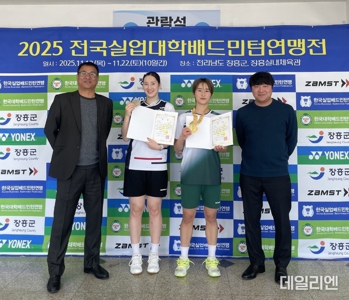 [데일리엔뉴스 이종성 기자] 화성시청 배드민턴팀의 배경은 선수가 2025 전국실업·대학배드민턴연맹전 여자일반부 단식 결승에서 팀 동료 백승연 선수를 2-0(21-11, 21-14)으로 꺾고 우승을 차지했다.