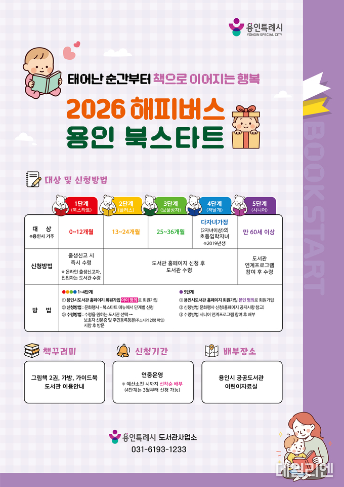 [데일리엔뉴스 이승준 기자] 용인특례시는 시민 선호도 조사 결과를 반영해 ‘2026년 해피버스 용인 북스타트’ 책꾸러미 도서 14권을 최종 선정했다고 26일 밝혔다.