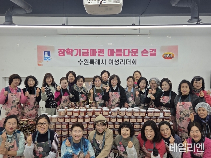 수원시여성리더회는 ‘수원시 여성지도자대학’ 수료생들이 2004년 결성한 단체로, 한부모가정 지원, 저소득층 학생 장학 후원, 복지관 급식 봉사, 김장 나눔, 헌혈 캠페인 등 지역사회 공헌 활동을 꾸준히 이어오고 있다.
