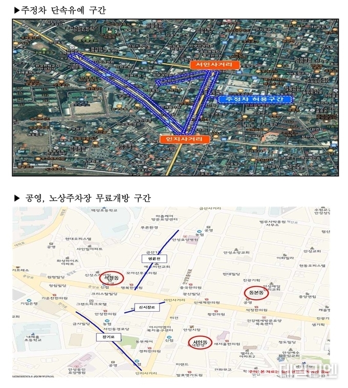 단속 유예 지역은 안성맞춤시장(서인사거리~인지사거리 양측 300m)과 중앙시장 인근(서인사거리~안성농협 양측 100m, 석정삼거리~인지사거리 양측 500m) 등이다.