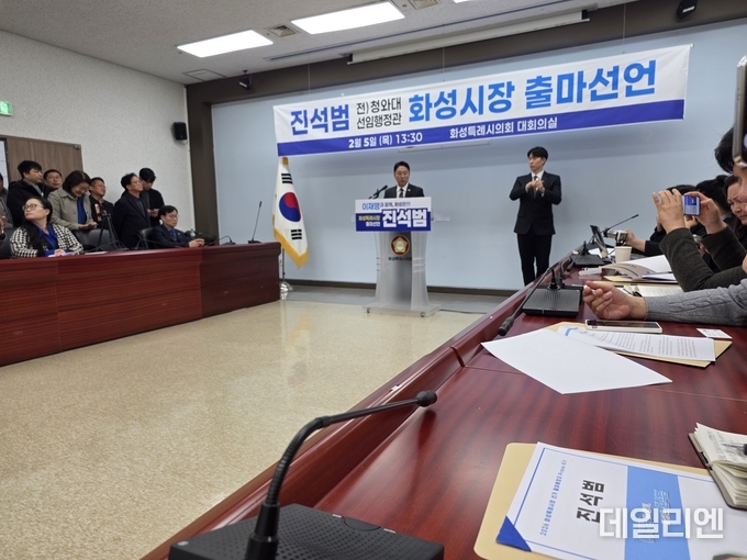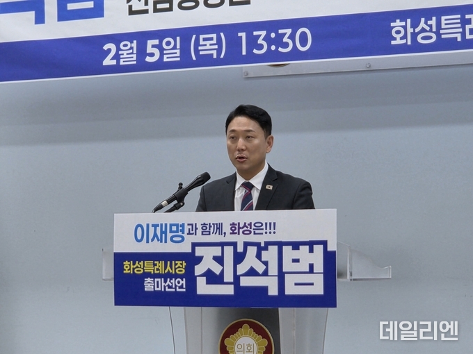 [데일리엔뉴스 이종성 기자] 진석범 화성시장 출마자가 5일 출마 기자회견에서 “화성특례시의 주인은 시민이며, 모든 시정은 시민의 삶을 중심에 놓고 설계해야 한다”고 강조했다.