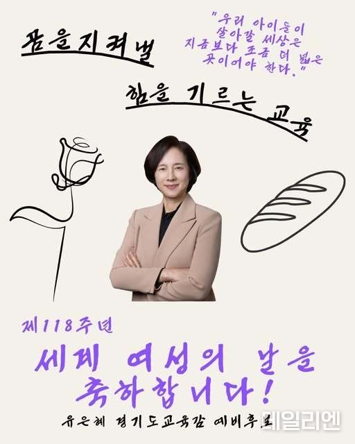 [데일리엔뉴스 이종성 기자] 유은혜 경기도교육감 예비후보가 세계 여성의 날을 맞아 “아이들이 자신의 꿈과 존엄을 지켜낼 힘을 배우는 교육이 필요하다”고 밝혔다.