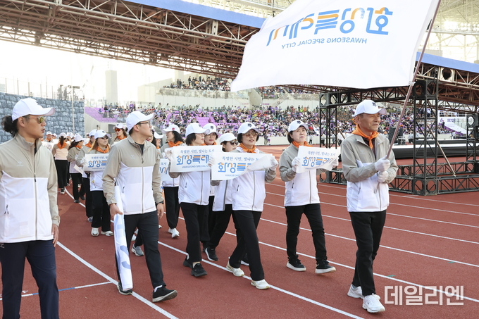 화성특례시 선수단은 입장식에서 ‘특별한 시민, 빛나는 도시 화성’을 앞세워 존재감을 드러냈다.