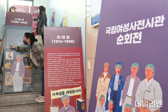 수원시에서는 세계 여성의 날 115주년을 기념한 연계 전시가 마련돼 눈길을 끈다. 오는 10일까지 ‘수원시 여성문화공간 휴’의 로비와 계단 등에서 진행되는 특별프로그램 ‘2023 국립여성사전시관 순회전’이다.