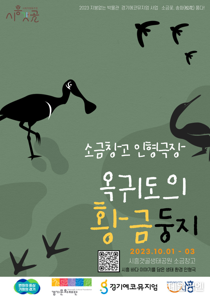[데일리엔뉴스 이종성 기자] 시흥시(시장 임병택)는 ‘2023 지붕없는 박물관(에코뮤지엄)’ 조성사업으로 오는 10월 1일부터 3일까지 사흘간 갯골생태공원 내 소금창고에서 인형극 ‘옥귀도의 황금둥지’를 상연한다고 26일 밝혔다.