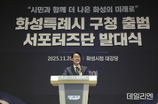 [데일리엔뉴스 유석주 기자] 화성특례시가 내년 2월 구청 체제 출범을 앞두고 시민 참여 기반을 강화하기 위해 ‘구청 출범 서포터즈단’을 공식 발족했다. 시는 20일 시청 대강당에서 발대식을 열고 서포터즈 300명에게 위촉장을 전달했다. 서포터즈단은 만세구·효행구·병점구·동탄구 등 4개 구청 체제 준비 과정에서 시민 의견을 수렴하고 제도 개선을 제안하는 역할을 맡는다. 시는 당초 200명 계획에서 시민 참여 열기를 반영해 300명으로 확대했다. 서포터즈는 구별 회의를 통해 주민 편의 개선 의견을 제시하고, 출범 전후 불편사항 파악과 개선 과제 제안, 홍보 활동 등 시민과 행정을 잇는 창구 역할을 수행한다. 발대식에는 정명근 화성시장과 구청체제 대비 TF, 시민 등이 참석했으며, 위촉장 수여와 역할 안내가 이어졌다. 이후 ‘화성시 2040 도시기본계획’과 ‘시민이 사랑하는 화성특례시’ 등 미래 비전을 공유하는 특강도 진행됐다. 정명근 화성시장은 “일반구 서포터즈와 협력해 구청 체제가 안정적으로 출범하도록 준비하겠다”며 “살고 일하고 여가를 즐길 수 있는 직주락 도시를 시민과 함께 만들겠다”고 밝혔다.
