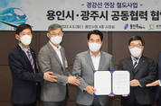 용인시와 경기 광주시가 경강선 철도를 광주 삼동역에서 용인 남사까지 연장하는 데 공동협력하기로 했다. 백군기 용인시장과 신동헌 광주시장은 5일 용인시청에서 이같은 내용을 담은 ‘경강선 연장(광주·용인) 철도사업 공동협력 추진 협약’을 체결했다. 경강선 연장은 경강선(판교~여주)을 광주 삼동역에서 분기해 에버랜드~용인~이동~남사를 잇는 철도망을 구축하는 사업이다. 시가 철도 중심의 광역교통망 확충을 위해 제4차 국가철도망 구축계획 반영을 추진했지만, 지난해 7월 국토교통부 고시에서 추가검토사업으로 확정되는 아쉬움이 있었다. 이날 협약에 따라 양 시는 경강선 연장안이 국가철도망 계획과 경기도 철도기본계획에 반영되도록 긴밀히 협력, 경기도와 중앙부처에 적극 요청한다. 또 사업의 원활한 추진을 위한 실무협의회를 구성해 행정적으로 지원하고, 민·관·정이 함께 참여할 수 있도록 적극 협력한다. 이와 함께 최적의 대안 노선 검토와 다른 노선과의 연계, 경제성을 높이는 방안 등도 공동 모색한다. 협약식에서는 또 제5차 국가철도망 구축계획 반영에 앞서 경기도 철도기본계획에 경강선 연장을 반영을 요구하는 내용의 ‘경강선 연장(광주·용인) 철도사업 경기도 철도기본계획 반영 촉구