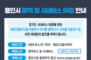 [데일리엔뉴스 이승준 기자] 용인특례시(시장 이상일)는 경기도버스노동조합협의회가 10월 1일부터 전면 파업에 돌입하겠다고 예고한 데 따라, 시민 불편을 최소화하기 위해 전세버스 투입과 경전철 증편 등 비상수송대책을 마련했다고 30일 밝혔다. 이번 파업에는 용인시 운수업체 5곳이 참여하며, 광역·시내버스 74개 노선 608대가 멈춘다. 이는 전체 노선(256개)과 차량(1,051대)의 57%에 해당한다. 마을버스 361대는 파업 대상에서 제외돼 정상 운행된다. 시는 교통정책국장을 본부장으로 한 비상수송대책본부(4개 반 22명)를 꾸려 즉각 대응에 나섰다. 우선 파업 첫날부터 처인구·기흥구 등 대체 교통수단이 부족한 지역을 중심으로 전세버스 30대를 6개 거점에 투입해 용인경전철과 수인분당선, 용인터미널로 연결한다. 용인경전철은 하루 19회를 증편해 출퇴근 시간대(오전 6~9시, 오후 4~8시)에 집중 배차하며, 택시 1916대와 마을버스도 같은 시간대 운행을 늘리도록 운송사에 협조를 요청했다. 이상일 용인시장은 “긴급하게 전세버스 투입 등 비상대책을 가동했다”며 “시민들께서는 홈페이지와 언론 보도를 확인해 주시고, 자가용 함께 타기와 지하철·경전철 이용에 협조