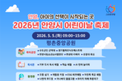 [데일리엔뉴스 이종성 기자] 안양시가 제104회 어린이날을 맞아 5월 5일 평촌중앙공원에서 어린이들이 직접 말하고, 놀고, 미래 기술을 체험하는 참여형 축제를 진행한다. 안양시는 오는 5월 5일 오전 9시부터 오후 3시까지 평촌중앙공원에서 ‘안양시 어린이날 축제’를 마련한다고 30일 밝혔다. 올해 축제 주제는 “안양, 아이의 선택이 시작되는 곳”이다. 시는 어린이들이 단순 관람객에 머물지 않고 직접 무대에 올라 자신의 생각과 바람을 말할 수 있도록 ‘오픈 마이크’ 프로그램을 준비했다. 오픈 마이크 참여를 원하는 아동은 인터넷으로 사전 신청할 수 있다. 사전 신청 인원이 미달될 경우 행사 당일 현장에서도 접수한다. 기념식은 오전 10시 중앙무대에서 진행된다. 문화예술, 과학·수학기술, 지역사회발전, 모범생활 등 4개 분야에서 모범 아동 9명에게 표창을 수여한다. 기념식에서는 ‘아동 권리 선언’ 낭독도 이어진다. 아동이 존중받고 행복하게 성장할 권리를 확인하며 어린이날의 의미를 함께 나누는 순서다. 축하 공연은 오전 10시 30분부터 펼쳐진다. 경기필하모닉오케스트라와 안양시립소년소녀합창단, 성결대학교 페가수스 응원단, 댄스 동아리 ‘흑심’, 수도군단 군악대 등이
