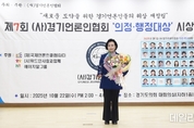 [데일리엔뉴스 이종성 기자] 성남시의회 민영미 의원이 22일 사단법인 경기언론인협회가 주최한 ‘제7회 의정·행정대상’에서 기초의회 부문 대상을 수상했다. 민영미 의원은 제9대 성남시의회 문화복지체육위원회에서 활동하며 시민 안전과 복지 증진을 위한 현장 중심 의정활동을 이어왔다. 특히 「성남시 장수노인 예우 및 지원에 관한 조례」를 제정해 고령친화적 예우·지원 체계를 확립하고, 노인복지 향상 기반을 다졌다는 평가를 받았다. 또한 「성남시 치매예방 및 관리조례」 개정으로 치매 예방 및 돌봄 서비스 강화를 이끌었으며, 「성남시 아동학대 예방 및 피해아동 보호조례」를 통해 사회적 약자 보호에 앞장섰다. 더불어 어르신·장애인 일자리 창출과 복지시설 환경 개선에도 기여했다. 민영미 의원은 수상 소감에서 “이 상은 돌봄의 빈틈을 메우기 위해 헌신한 현장의 종사자, 공직자, 동료 의원, 시민 모두의 몫”이라며 “국민의 안전과 복지, 지역 상생을 위해 더욱 치열하게 일하라는 뜻으로 받겠다”고 소감을 밝혔다. 이어 “앞으로도 모두의 일상에 힘이 되는 의정으로 시민께 보답하겠다”며 “이 영광을 허락해 주신 경기언론인협회와 함께해주신 모든 분들께 깊이 감사드린다”고 덧붙였다.