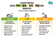 [데일리엔뉴스 이종성 기자] 경기도는 맞벌이 가정과 한부모가정, 영유아·아동 등을 위한 생활밀착형 지원을 강화하기 위해 2026년 가족·돌봄·보육·여성폭력 분야에서 모두 16개 제도를 신규 도입하거나 개선한다고 4일 밝혔다. 이번 개편은 돌봄과 양육, 안전을 포괄하는 통합 복지 체계를 구축하는 데 초점을 맞췄다. 경기도는 가족·돌봄, 보육, 여성폭력 대응을 중심으로 정책을 정비해 지원의 사각지대를 줄일 방침이다. 가족·돌봄 분야에서는 아이돌봄서비스 지원 기준을 중위소득 250% 이하까지 확대하고, 아이돌보미 자격제 도입과 수당 인상, 야간긴급돌봄 수당 신설로 서비스의 전문성과 처우를 개선한다. 한부모가족 지원은 아동양육비 지급 대상 소득 기준을 넓히고 참여 시군을 확대하며, 학습재료비와 생필품비, 조손가족 대학등록금 지원을 강화한다. 청소년 부모 가정에는 자녀 1인당 월 25만 원의 양육비 지원 대상 소득 기준을 상향한다. 결식아동 급식 단가는 9500원에서 1만 원으로 인상하고, 입양비용 지원 대상을 양부모로 변경해 1인당 100만 원을 지원한다. 경기형 가족돌봄수당은 참여 시군을 26개로 확대해 조부모 등 친인척이나 이웃이 돌보는 경우 월 최대 60만 원