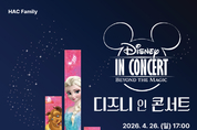 [데일리엔뉴스 이종성 기자] 디즈니 공식 라이선스 콘서트 ‘2026 디즈니 인 콘서트 : Beyond the Magic’이 오는 4월 26일 오후 5시 화성예술의전당 동탄아트홀에서 열린다. 이번 공연은 개관 이후 처음 선보이는 ‘HAC Family 시리즈’의 첫 무대로, 온 가족이 함께 즐길 수 있는 공연 콘텐츠로 기획됐다. ‘디즈니 인 콘서트’는 평균 관람 평점 9.8점을 기록하며 꾸준한 인기를 이어온 라이브 콘서트다. 5주년을 맞은 올해 공연에서는 <인어공주>, <라이온 킹>, <알라딘>, <미녀와 야수> 등 클래식 명작을 비롯해 <라푼젤>, <모아나>, <겨울왕국> 등 주요 작품의 대표곡을 오케스트라 연주로 선보인다. 대형 스크린에 상영되는 디즈니 애니메이션 영상과 국내 뮤지컬 배우, 오케스트라가 어우러져 무대를 구성한다. 특히 2024년 개봉작 <무파사: 라이온 킹>의 대표곡 ‘I Always Wanted A Brother’도 라이브로 공개될 예정이다. 무대에는 이종석, 이아름솔, 이수빈, 신은총 등 4명의 싱어가 참여해 다양한 색깔의 무대를 선보인다. 화성예술의전당