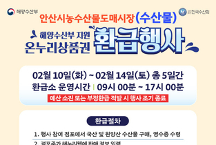 [데일리엔뉴스 이종성 기자] 수원특례시 농수산물도매시장 수산동이 설 명절을 맞아 오는 2월 10일부터 14일까지 온누리상품권 환급행사를 진행한다. 행사 기간 수산동에서 국내산 수산물을 구매하면 구매 금액의 최대 30%를 온누리상품권으로 환급받을 수 있다. 1인당 최대 환급 한도는 2만 원이다. 해양수산부가 주관하는 이번 환급행사는 구매 금액이 3만4천 원 이상일 경우 1만 원, 6만7천 원 이상이면 2만 원의 온누리상품권을 지급하는 방식으로 운영된다. 수산동 내 59개 점포 가운데 43개 점포가 행사에 참여하며, 냉동 수산물과 선어, 조개류, 활어, 건어 등 다양한 국내산 수산물을 취급한다. 참여 점포 목록은 수원시농업기술센터 홈페이지 공지사항에서 확인할 수 있다. 환급을 받으려면 행사 기간 중 당일 오전 10시부터 오후 6시 사이 결제한 영수증을 환급행사 부스로 가져가 본인 확인 절차를 거쳐야 한다. 시 관계자는 “국내 수산물 소비를 촉진하고 체감 물가 부담을 덜기 위해 환급행사를 마련했다”며 “설을 앞두고 많은 시민이 수원시농수산물도매시장을 찾아주길 바란다”고 말했다.