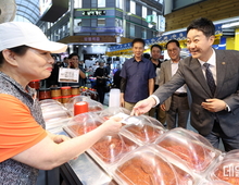 [데일리엔뉴스 이종성 기자] 경기도의회 김진경 의장(더불어민주당·시흥3)이 추석 명절을 앞둔 지난달 30일 시흥 삼미시장을 찾아 상인들의 목소리를 직접 청취하며 전통시장 활성화 방안 논의에 나섰다. 이날 현장에는 안광률 교육기획위원장(더민주·시흥1), 성기철 경기도 경제기획관, 박성훈 경기도시장상권진흥원 상임이사 직무대행, 이진아 시흥시 소상공인과장 등이 함께했다. 김진경 의장은 삼미시장 상인회와의 정담회에서 아케이드·CCTV 노후화 등 상인들이 호소한 불편과 불안을 듣고, “전통시장이 지역 공동체의 중심축이자 도민의 생활과 직결된 공간인 만큼 예산 지원과 제도 개선을 꼼꼼히 챙기겠다”며 “실질적으로 체감할 수 있는 정책으로 실용 의정을 실현하겠다”고 밝혔다. 또한 추석 장보기에 나선 시민들과 인사를 나누며 “전통시장이 희망의 출발점이 될 수 있도록 적극 지원하겠다”며 지역경제 회복 의지를 강조했다. 김 의장은 현장에서 직접 구입한 사과·배·포도·떡·젓갈 등을 경기도 내 사회복지시설에 위문품으로 전달해 따뜻한 나눔도 실천했다.