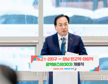 [데일리엔뉴스 유석주 기자] 오산시가 세교 1·2지구와 성남 판교·야탑역을 연결하는 8303번 광역버스 운행을 오는 2월 2일부터 시작한다. 시는 30일 오후 오산역 환승센터에서 개통식을 열고, 8303번 버스의 정식 운행 개시를 공식화했다. 개통식에는 이권재 오산시장, 이상복 오산시의회 의장, 최병현 오산교통 대표를 비롯해 시민 100여 명이 참석했다. 8303번 광역버스는 세교한신더휴를 출발해 오산초, 세교2지구 7단지, 호반써밋라포레, 세교고인돌공원, 죽미마을입구, 세마중·고, 세마역 등을 경유하며 성남 판교·야탑역까지 운행된다. 차량 2대가 하루 8회 운행되며, 첫차는 세교한신더휴에서 출발한다. 오산시는 이번 노선 신설을 통해 세교신도시 주민들의 광역교통 편익이 한층 향상될 것으로 기대하고 있다. 특히 판교·야탑역은 각각 신분당선·경강선, 수인분당선 등 수도권 핵심 철도노선과 연계돼 있어 환승 편의성이 높다. 앞서 시는 원도심과 운암지구에서 성남 방면으로 향하는 8301번과 8302번 광역버스를 운행해왔다. 이번 8303번 신설로 오산 전역에서 판교·야탑 등 수도권 주요 거점으로의 접근성이 대폭 향상된 셈이다. 오산시 관계자는 “8303번 개통은 시민