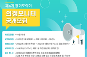 [데일리엔뉴스 이종성 기자] 경기도의회는 의정활동에 필요한 도민의 다양한 의견을 수렴하고 소통하는 의회, 열린 의회 구현을 위해 제4기 의정모니터 40명을 공개 모집한다. 모집기간은 9월 1일부터 15일까지 2주간이며, 경기도에 주소를 둔 만 18세 이상 경기도민이면 누구나 신청이 가능하다. 제4기 의정모니터 활동기간은 위촉일(2022년 10월 예정)로부터 2024년 6월 30일까지이고 ▲ 도의회 및 의원의 의정활동에 필요한 각종 제안 ▲ 조례 등 자치입법의 제․개정 및 폐지 건의 ▲ 제도 개선사항 또는 도민 불편사항 건의 ▲ 불합리한 예산집행 개선 건의 ▲ 의회방청 및 의회활동 모니터 ▲ 의정활동 및 모니터 활동사항 홍보 등의 활동을 하게 된다. 경기도의회는 모니터의 적극적인 활동을 지원하기 위해 의정모니터 위촉장 수여와 신분증을 발급하고 우수 제안 및 건의 사항 등은 심사를 거쳐 소정의 보상금을 지급하며 우수 활동 모니터는 표창할 계획이다. 신청서식은 경기도의회 홈페이지 또는 도내 31개 시군 지역상담소에서 받을 수 있으며, 담당자 이메일(any2mk@gg.go.kr/031-8008-7215)이나 우편(경기도 수원시 영통구 도청로 30, 경기도의회 의사담