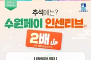 [데일리엔뉴스 이종성 기자] 수원시(시장 이재준)는 추석 명절을 맞아 10월 한 달 동안 수원페이 인센티브를 20%로 확대한다. 인센티브 지급은 10월 1일 오전 9시부터 예산 소진 시까지 진행된다. 충전 한도는 50만 원으로, 50만 원을 충전하면 10만 원의 인센티브를 받을 수 있으며, 1인당 수원페이 보유 한도는 100만 원으로 설정돼 있어 잔액을 소비한 후 충전 가능하다. 수원페이는 경기지역화폐 앱과 오프라인 충전소에서 충전할 수 있으며, 오프라인 충전소 목록은 수원시 홈페이지 공지사항에서 확인할 수 있다. 수원시는 올해부터 인센티브 기본률을 10%로 확대하고 충전 한도도 기존 30만 원에서 50만 원으로 상향했으며, 설·추석 명절이 포함된 1월과 10월에는 20%로 인센티브를 늘려 운영하고 있다. 시 관계자는 “수원페이 인센티브 확대가 시민들의 경제적 부담을 덜고 지역경제 활성화에 기여하길 바란다”며 “추석 연휴 골목상권 소비 증가도 기대된다”고 말했다.