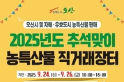[데일리엔뉴스 유석주 기자] 오산시(시장 이권재)는 추석을 맞아 오는 24일부터 26일까지 3일간 오산시청 광장에서 ‘추석맞이 자매도시 농특산물 직거래장터’를 개최한다. 올해 직거래장터에는 영동군, 속초시, 순천시, 진도군, 남해군, 장수군, 남원시, 공주시, 오산시 등 9개 시군의 24개 업체가 참여한다. 제수용품과 선물세트를 포함해 다양한 특산물이 한자리에 모인다. 판매 품목은 영동군 포도·곶감·와인, 속초시 젓갈류·명태강정, 순천시 홍차·전통장, 진도군 김·전복·울금, 공주시 햇밤·장류, 남원시 강정·추어탕, 오산시 세마쌀·전통주·호두정과 등이다. 시중보다 저렴하게 판매돼 명절 물가 부담 완화에 도움이 될 전망이다. 시는 이번 장터를 통해 자매·우호도시 농가에는 안정적인 판로를 제공하고, 시민들에게는 믿을 수 있는 농특산물을 접할 기회를 마련해 도농 상생 효과를 높일 계획이다. 이권재 오산시장은 “이번 장터가 시민들께는 합리적 소비의 기회가 되고, 자매·우호도시 농가에는 든든한 판로가 되길 바란다”며 “앞으로도 상생과 교류를 통해 지역경제에 활력을 불어넣겠다”고 말했다.
