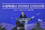 [데일리엔뉴스 이종성 기자] 박승원 광명시장이 12일 오전 열린 2026년 신년 기자회견에서 ‘유능한 시민의 정부, 광명’을 주제로 올해 시정 방향과 2030 비전을 제시했다. 박승원 시장은 “모든 권력은 시민으로부터 나온다는 헌법 정신이 광명에서는 원칙으로 자리 잡았다”며 “광명은 시민이 참여하고 결정하는 시민주권 도시로 변화해 왔다”고 말했다. 박 시장은 지난 8년간 전 동 주민자치회 운영, 동장공모제, 500인 원탁토론회, 시민위원회 구성 등을 통해 시민 참여 기반을 확대해 왔다고 설명했다. 평생학습지원금과 온라인 학습 플랫폼, 탄소중립 실천과 자원순환 정책 등도 시민 참여로 이뤄낸 성과라고 평가했다. 박 시장은 올해를 시민주권과 기본사회 정책을 체계화하는 해로 삼겠다고 밝혔다. 그러면서 “기본사회는 모든 행정의 기준이 돼야 한다”며 “기본사회위원회를 중심으로 정책을 점검하고 시민의 삶과 연결하겠다”고 말했다. 통합돌봄 체계 구축과 재택의료 지원 확대도 추진 과제로 제시했다. 도시 기반 확충과 개발 사업도 이어진다. 강소형 스마트도시 조성사업을 마무리하고, 정원도시 조성과 수목원·공원 확충을 통해 녹색 생활환경을 강화할 계획이다. 광명시흥 테크노밸리 분양, 하안동 K-혁신타운 조성, 광명하안2 공공주택지구와 구름산지구 개발, 광명시흥 3기 신도시 보상 절차 등 대규모 사업도 본격 추진된다. 재건축·재개발 사업 역시 기반시설 확충과 함께 진행된다. 5만 석 규모의 K-아레나 유치도 미래 성장 전략으로 제시됐다. 박 시장은 문화산업과 연계한 새로운 성장 기반을 마련하겠다고 밝혔다. 신안산선과 월곶판교선 등 철도망 확충, 버스 노선 확대, 자율주행 셔틀버스 도입 등 교통 인프라 개선도 추진된다. 박 시장은 “2030년 광명은 시민이 정책의 중심에 서 있는 도시가 될 것”이라며 “시민과 함께 도시의 미래를 완성해 가겠다”고 말했다.