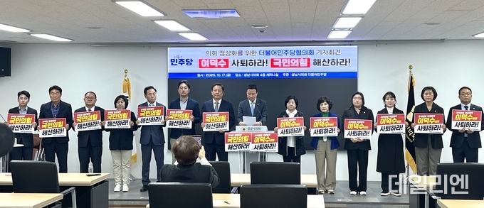 [데일리엔뉴스 이종성 기자] 성남시의회 더불어민주당협의회(대표의원 이준배)는 17일 기자회견을 열고 국민의힘 이덕수 의원의 허위발언과 의회 파행 책임을 강력히 규탄하며 사퇴를 촉구했다.