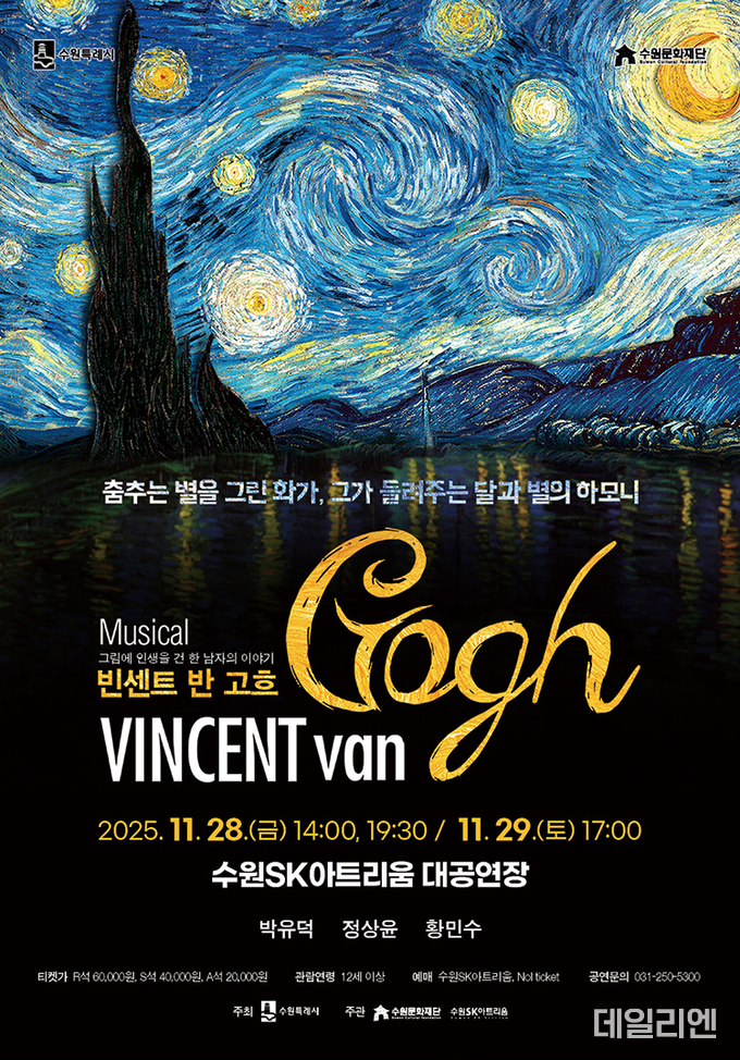 [데일리엔뉴스 이종성 기자] 수원문화재단(대표이사 오영균)은 깊어가는 가을, 명품 뮤지컬 ‘빈센트 반 고흐’를 오는 11월 28일과 29일 양일간 수원SK아트리움 대공연장에서 선보인다고 23일 밝혔다.