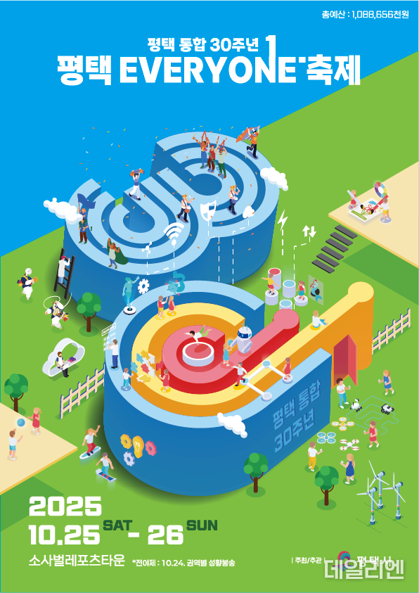 시는 오는 25일부터 26일까지 이틀간 소사벌레포츠타운 일원에서 ‘평택 통합 30주년, 평택 EVERYONE 축제’를 개최한다.
