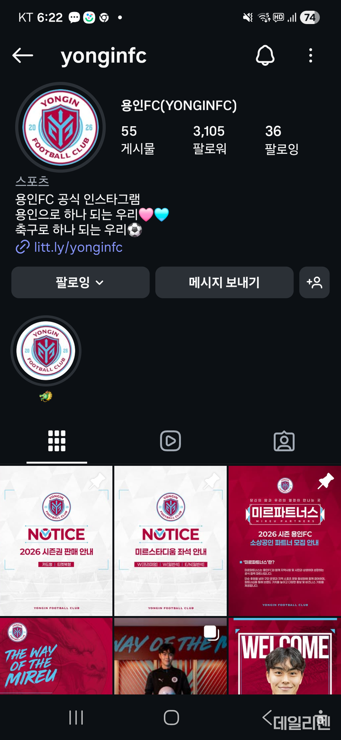 용인FC 관계자는 “창단식 신청은 인스타그램이 아니라 용인FC 공식 홈페이지를 중심으로 받을 계획”이라며 “인스타그램은 보조적인 홍보 채널”이라고 설명했다.