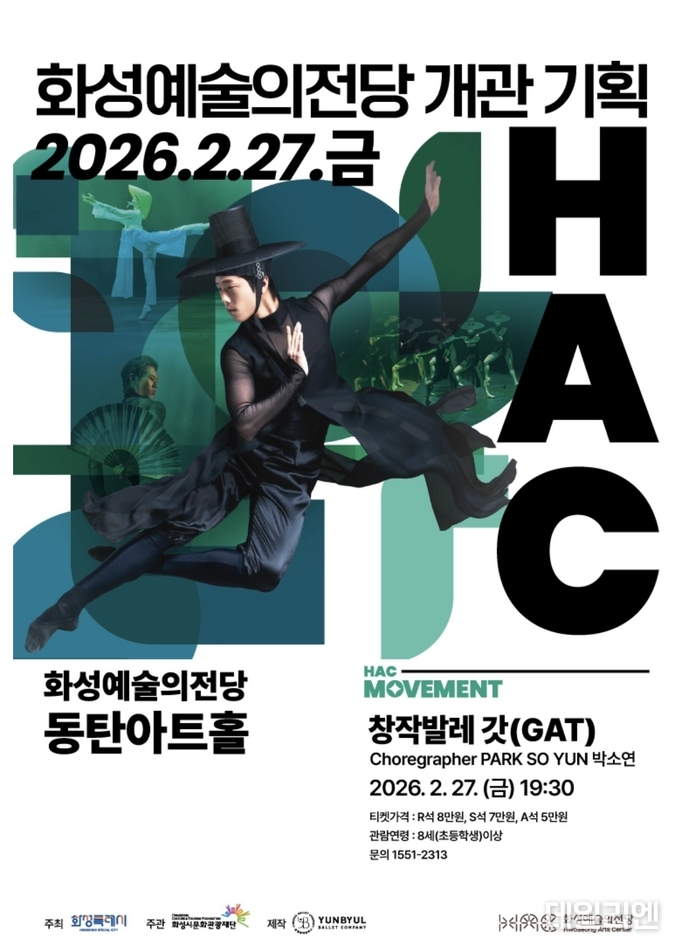 [데일리엔뉴스 이종성 기자] 화성특례시가 예술의전당 개관을 기념하는 핵심 프로그램으로 창작발레 갓(GAT)을 27일 오후 7시 30분 동탄아트홀 메인 무대에서 선보인다.