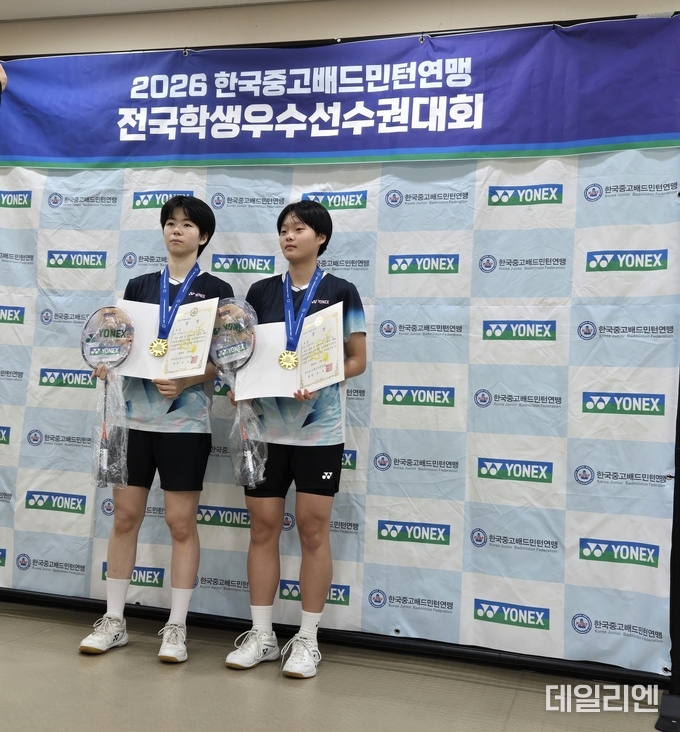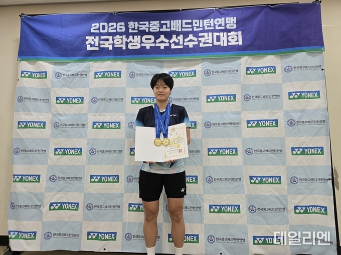 [데일리엔뉴스 이종성 기자] 수원 명인중 김태현 선수가 2026 한국중고배드민턴연맹 전국학생우수선수권대회에서 단식과 복식을 모두 제패하며 2관왕에 올랐다.