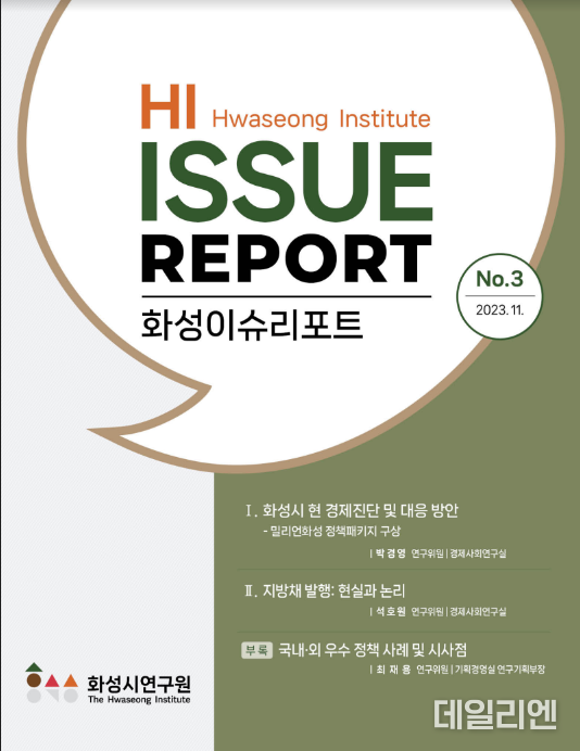 [데일리엔뉴스 이종성 기자] 매월 화성시정 현안에 대해 연구하고 정책제안을 제시하기 위해 ‘화성이슈리포트’를 발간하고 있는 화성시연구원은 12월‘화성이슈리포트 제3호’를 발간했다.