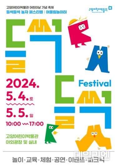 [데일리엔뉴스 이종성 기자] 고양특례시 산하 (재)고양문화재단 고양어린이박물관이 어린이날을 맞이해 '2024년 들썩들썩 놀자 페스티벌 : 어울림 놀이터'를 개최한다.
