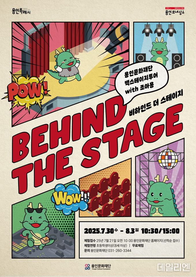[데일리엔뉴스 이종성 기자] 용인문화재단(이사장 이상일)은 무대 예술 체험 프로그램 ‘조아용과 함께하는 비하인드 더 스테이지’를 7월 30일부터 8월 3일까지 용인포은아트홀에서 개최한다.