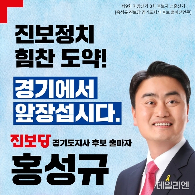 [데일리엔뉴스 이종성 기자] 진보당이 내년 지방선거 경기도지사 후보로 홍성규 중앙당 수석대변인을 확정했다. 경기도지사 후보 확정은 원내외를 막론하고 진보당이 처음이다.