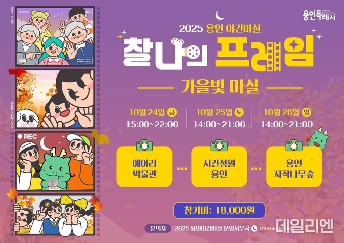 [데일리엔뉴스 이승준 기자] 용인특례시(시장 이상일)는 지역의 대표 야간 관광 프로그램 ‘2025 용인 가을빛마실’ 참가자 315명을 모집한다고 10일 밝혔다.