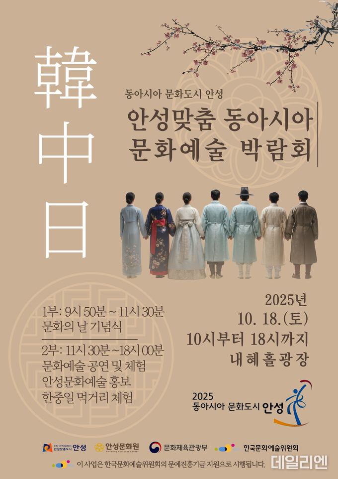 안성문화원은 제54회 안성시 문화의 날을 맞아 오는 18일 오전 9시 50분부터 오후 6시까지 내혜홀광장에서 ‘안성맞춤 동아시아 문화예술박람회’를 개최한다. 이번 행사는 한·중·일 3국의 전통과 문화를 체험하고 지역 문화예술을 홍보하기 위해 마련됐다.