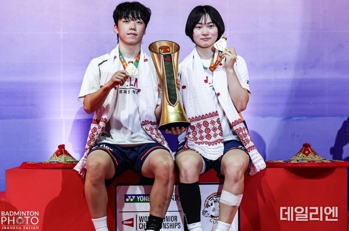 ![2025 세계주니어배드민턴선수권대회 혼합복식에서 금메달을 차지한 한국의 이형우(왼쪽·광명북고)와 천혜인(전주성심여고) 조가 트로피와 메달을 들고 포즈를 취하고 있다. [사진=대한배드민턴협회]](http://www.dailyn.net/data/photos/20251043/art_17610009909446_38ae14.jpg?iqs=0.19619605251495242)