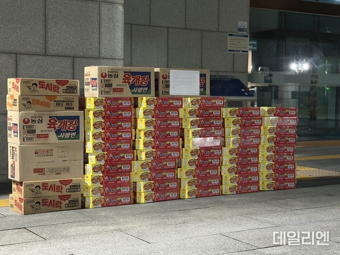 27일 새벽, 수원시청 중앙현관 앞에는 컵라면이 가득 담긴 상자 여러 개가 놓여 있었다. 산불 감시가 본격적으로 시작되는 시기마다 어김없이 등장하는 이 상자는, 광교에 거주하는 한 시민이 공직자와 산불감시원들을 위해 준비한 것이다.