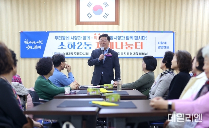 [데일리엔뉴스 이종성 기자] 박승원 광명시장이 30일 소하2동을 찾아 시민과 직접 소통하는 ‘우리동네 시장실’을 열고 현장 중심 행정을 이어갔다.