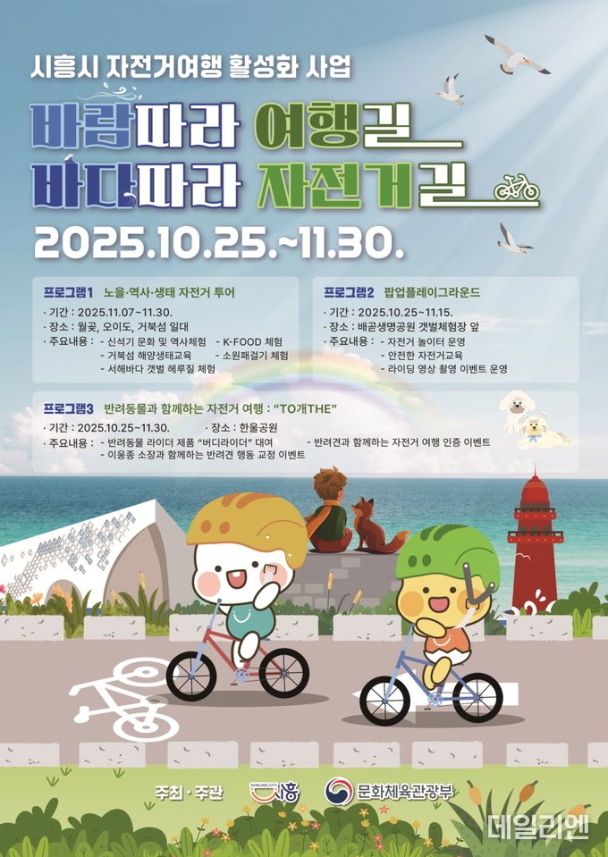 [데일리엔뉴스 이종성 기자] 시흥시(시장 임병택)가 문화체육관광부 주관 ‘2025년 지역 자전거여행 활성화 공모사업’에 최종 선정돼 시민과 관광객이 함께 즐길 수 있는 ‘자전거 여행도시 시흥’ 조성에 나선다.