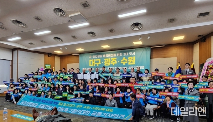 [데일리엔뉴스 이종성 기자] 수원특례시 군공항이전 및 경기통합국제공항추진 시민협의회가 대구·광주 시민단체와 함께 군 공항 및 민간공항 통합이전 사업의 조속한 추진을 촉구하는 공동행동에 돌입했다.
