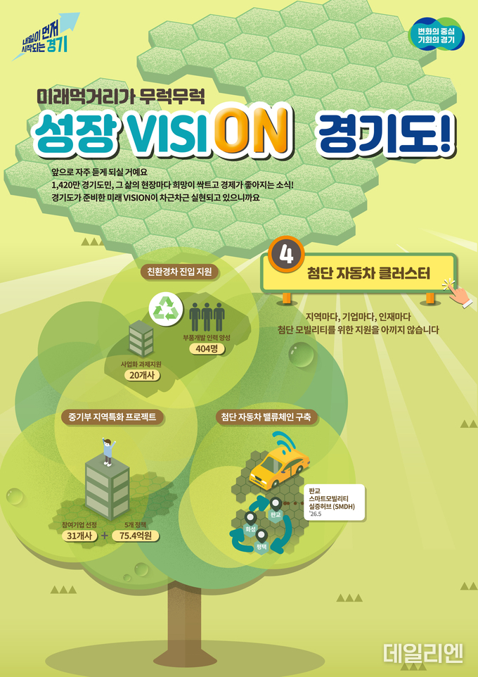 [데일리엔뉴스 이종성 기자] 경기도가 화성과 평택, 성남 판교를 핵심축으로 미래차 산업 기반을 구축하며 첨단 모빌리티 생태계 조성에 속도를 내고 있다.