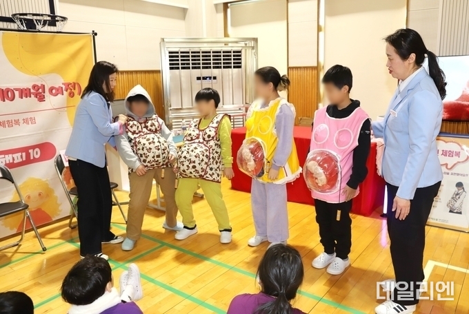 학생들은 실제 임산부의 체중 증가를 구현한 체험복을 착용하거나 AI 기반 신생아 모형에게 우유를 먹이는 활동을 통해 임신·출산의 어려움과 생명 탄생의 의미를 자연스럽게 체감했다.