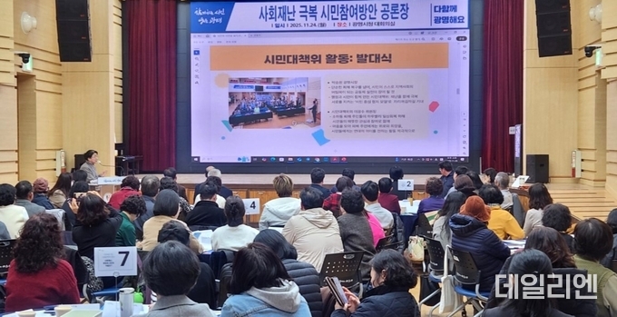 시는 24일 시청 대회의실에서 시민 80여 명이 참여한 ‘사회재난 극복 시민참여 방안 공론장’을 열고 재난 대응 기준 마련을 위한 논의를 진행했다.