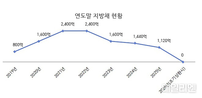 발행된 지방채는 △2023년 1600억 원 △2024년 1440억 원 △2025년 1120억 원으로 순차적으로 줄었고, 시는 원래 2029년까지 예정된 상환 일정을 3년 앞당기기로 결정했다.