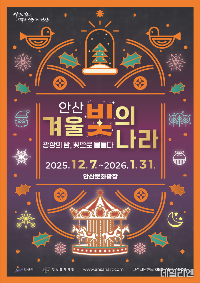 [데일리엔뉴스 이종성 기자] 안산시는 오는 7일부터 내년 1월 31일까지 안산문화광장 일대에서 겨울 야간 축제 '2025 안산 겨울 빛의 나라'를 개최한다고 1일 밝혔다.