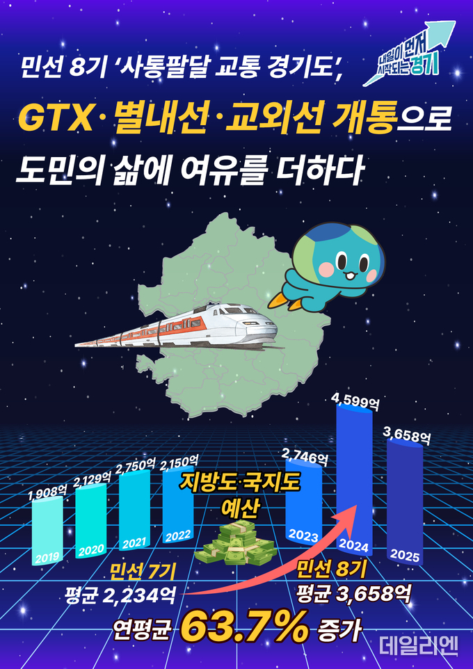 철도뿐 아니라 도로망 확충도 빠르게 추진됐다. 민선 8기 지방도·국지도 예산은 평균 3658억 원으로, 민선 7기 대비 63.7% 증가했다.