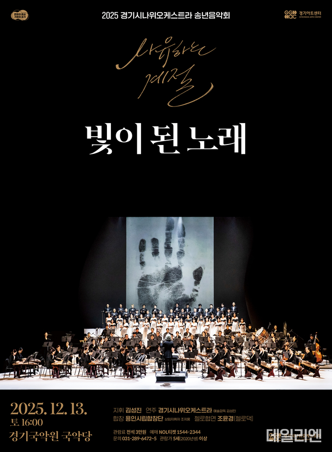 [데일리엔뉴스 이종성 기자] 경기시나위오케스트라가 광복 80주년을 기념하는 송년음악회를 12월 13일 경기국악원 국악당에서 개최한다. 공연 제목은 ‘사유하는 계절 : 빛이 된 노래’로, 한 해의 마무리와 함께 광복 80주년의 의미를 음악으로 되새기는 무대다.