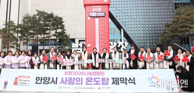 [데일리엔뉴스 이종성 기자] 안양시가 범계역 광장에 ‘희망 2026 사랑의 온도탑’을 세우고 연말연시 이웃돕기 모금 목표 9억 원 달성을 위한 공식 캠페인을 시작했다.